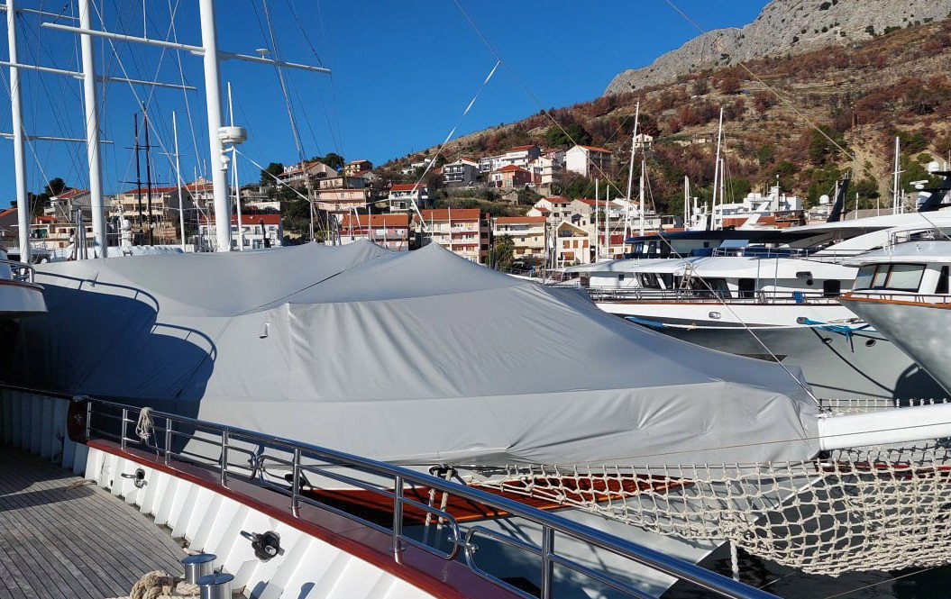 Najveća razlika nije samo u trajnosti materijala, nego u načinu razmišljanja. Privremeni cover služi da nešto kratkotrajno prekrije. Dugoročno rješenje projektira se da sustavno štiti plovilo kroz više sezona.Kod kvalitetnog full boat covera važan je svaki element: odabir odgovarajućeg materijala, krojenje prema stvarnim mjerama, raspored napetosti, način zatvaranja i mogućnost kontroliranog prozračivanja. To znači da pokrivalo ne stoji slučajno na plovilu, nego prati njegove linije i radi kao funkcionalna cjelina. Upravo zato su pokrivala izrađena prema stvarnim uvjetima korištenja znatno pouzdanija od improviziranih rješenja.Dobar sustav uzima u obzir ono što se događa tijekom cijelog razdoblja mirovanja: promjene temperature, dugotrajnu izloženost vlazi, opterećenje oborinama i potrebu da se brod očuva bez nepotrebnog stresa za površine i opremu. Nije svejedno je li pokrivalo samo prebačeno preko broda ili je izrađeno s jasnom funkcijom, pravilnim osloncem i kontroliranim odvodom vode.Dugoročno rješenje zato uključuje:
